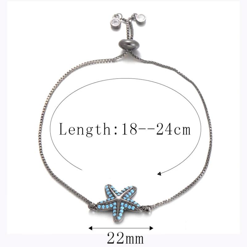 CZ Zircon Starfish Charm Bracelet Adjustable Chain Bangles