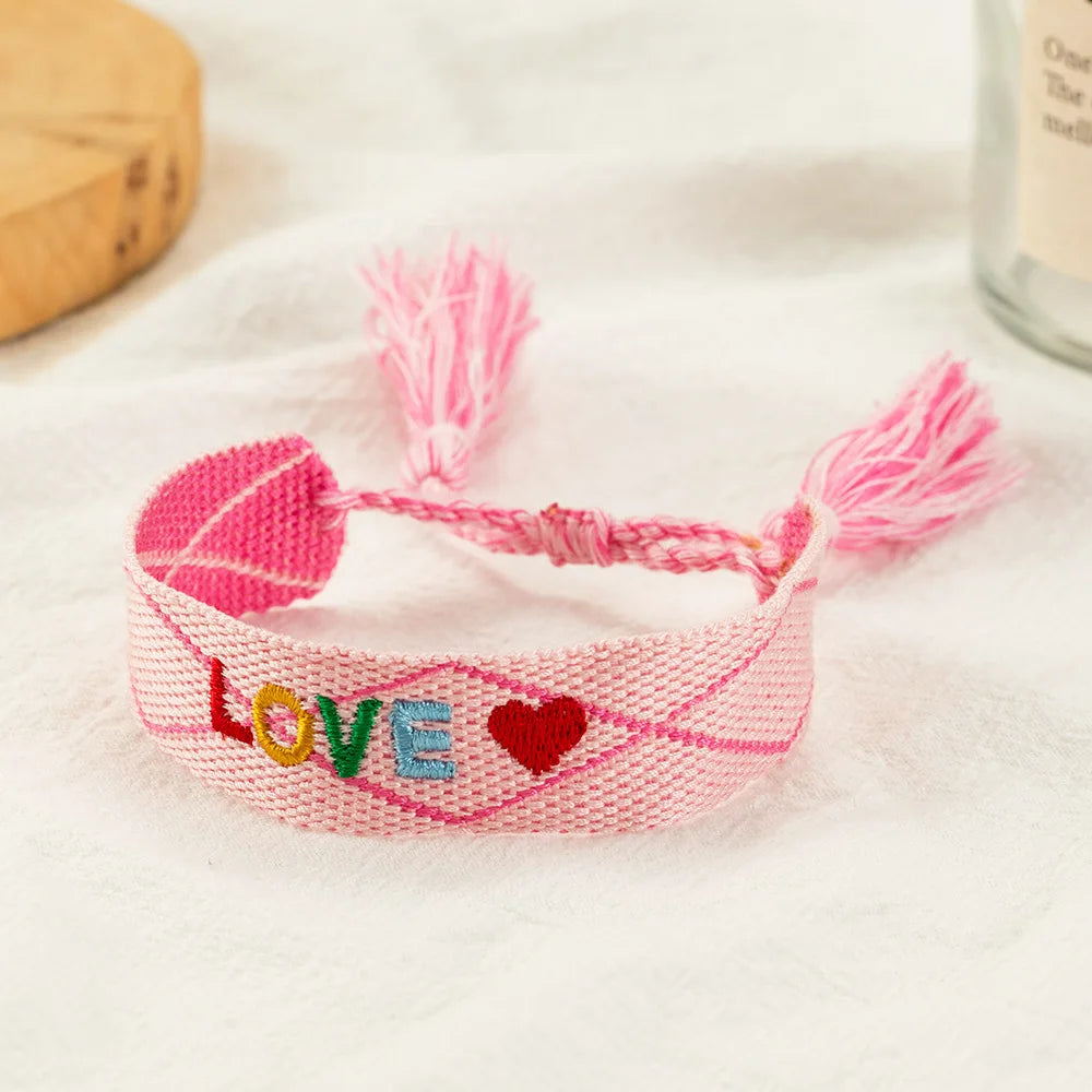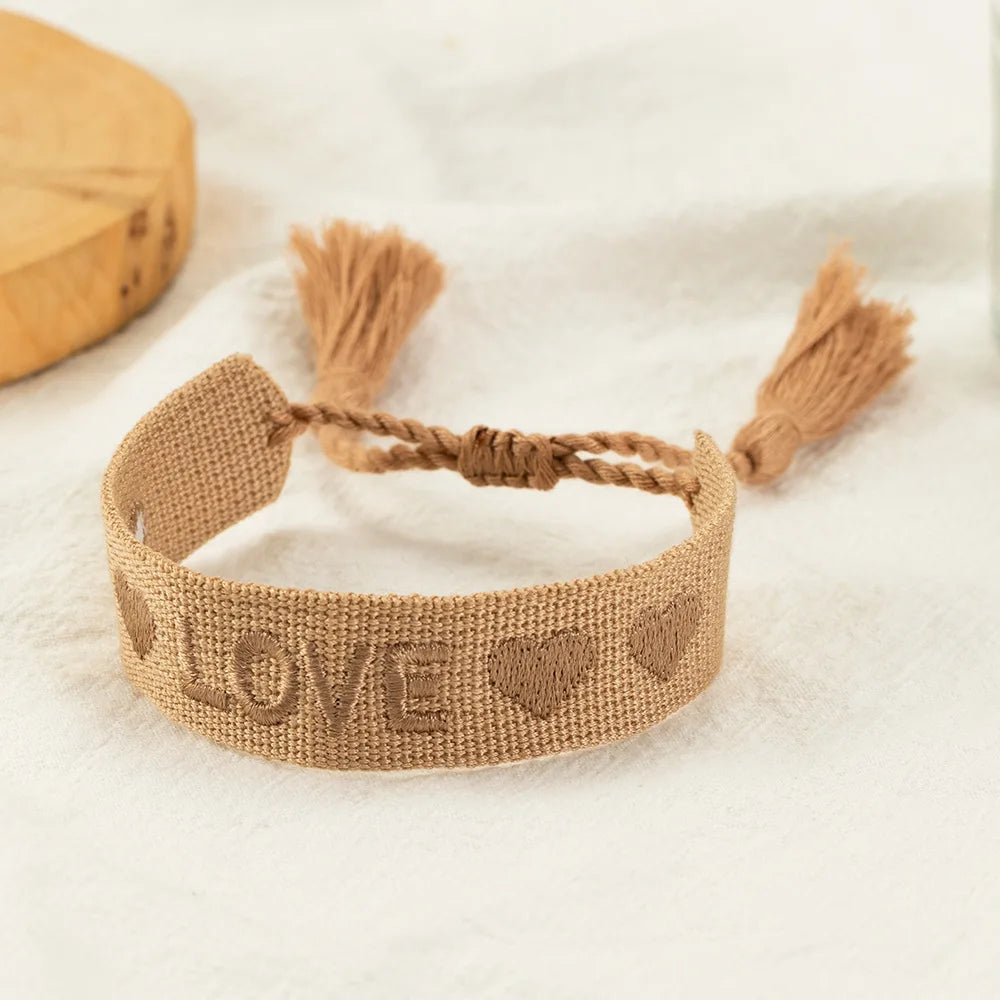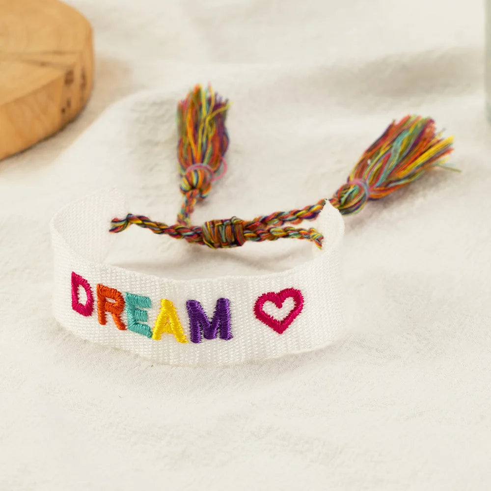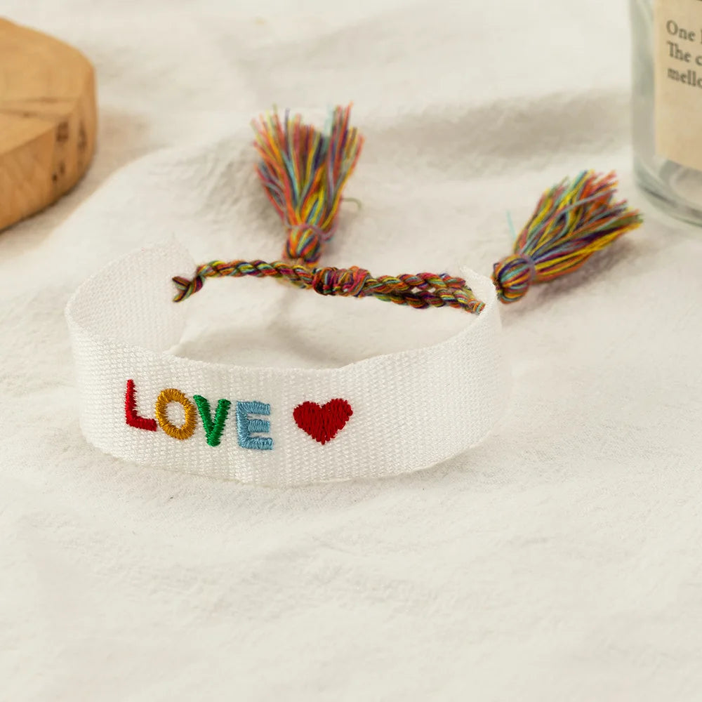 Embroidered Wrist Band Tassel Letter Bracelet Women Jewelry