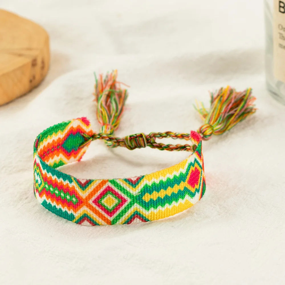 Stay stylish with this woven bracelet featuring tassel and letter details. Perfect for summer holidays and a great gift for women.