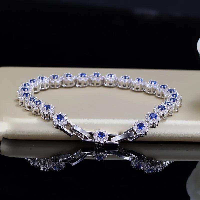 Elegant silver tennis bracelet with green cubic zirconia stones, perfect for adding sparkle to any outfit.