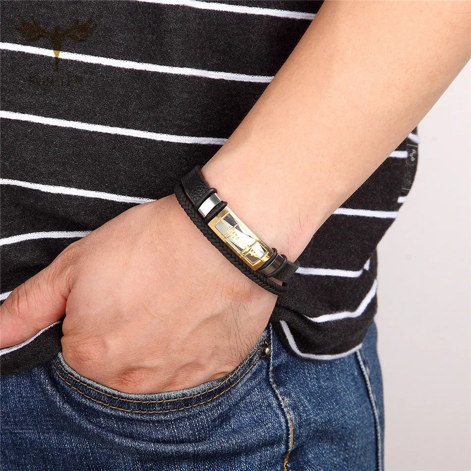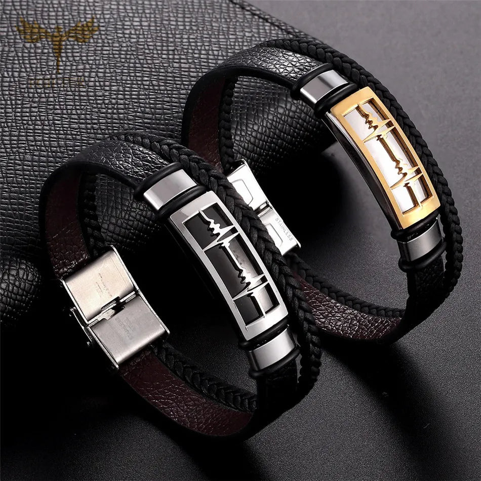 Heart Charm Leather Bracelets Stainless Steel Love Cuff Bangles