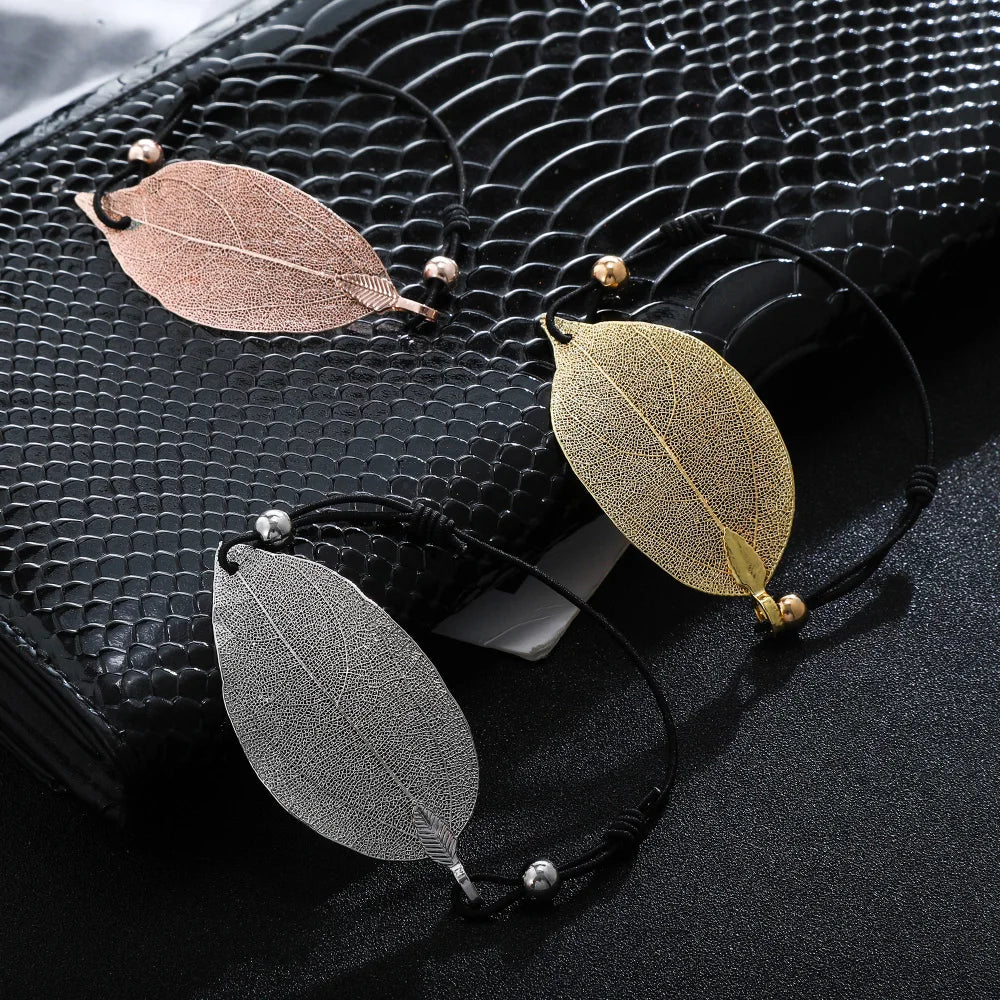 Description:This elegant bracelet features real natural leaf charms, adjustable rope design, and a silver finish. Perfect for women.Features: Real natural leaf charm bracelet Adjustable length from 15cm to 22cm Silver jewelry for women Elegant and stylish design Perfect gift for any occasion This product may be available in additional colours...