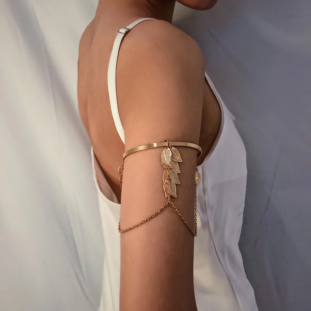 Leaf Tassel Chain Bracelet Bangles Adjustable Arm Bracelets