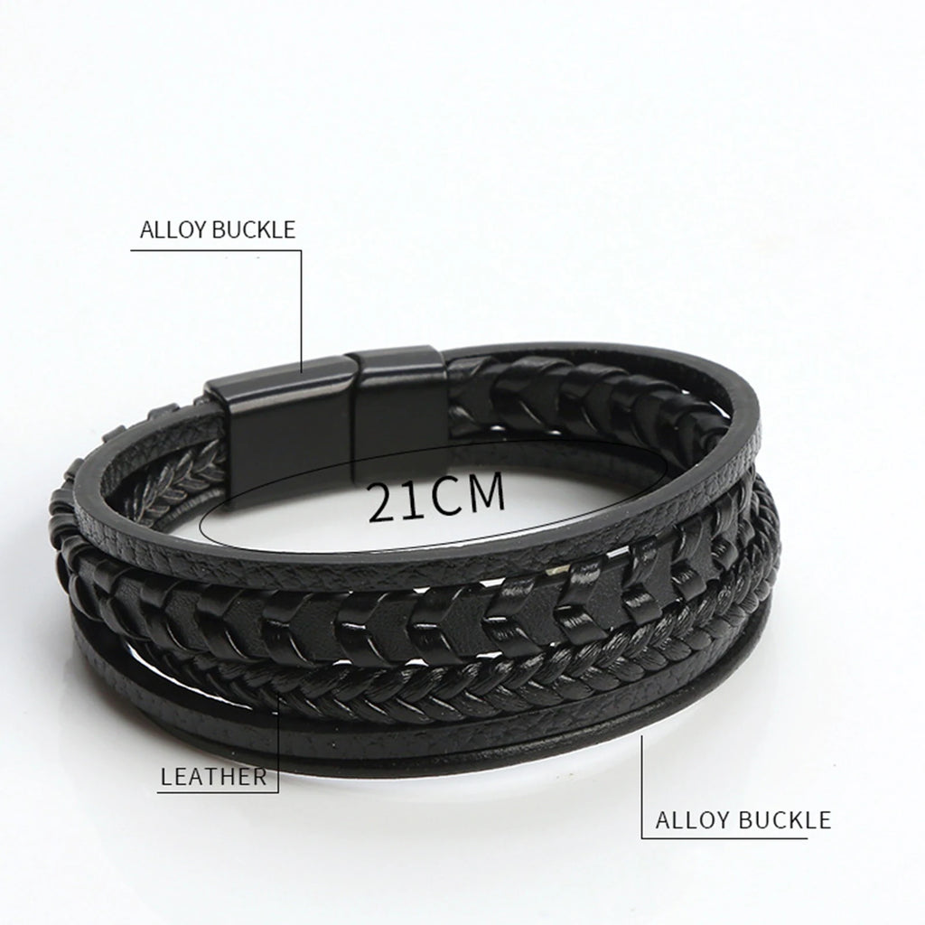 This stylish leather bracelet for men features a multi-layer design with beading and a convenient magnet buckle. It is the perfect accessory to elevate any outfit or as a thoughtful gift for a special man in your life.