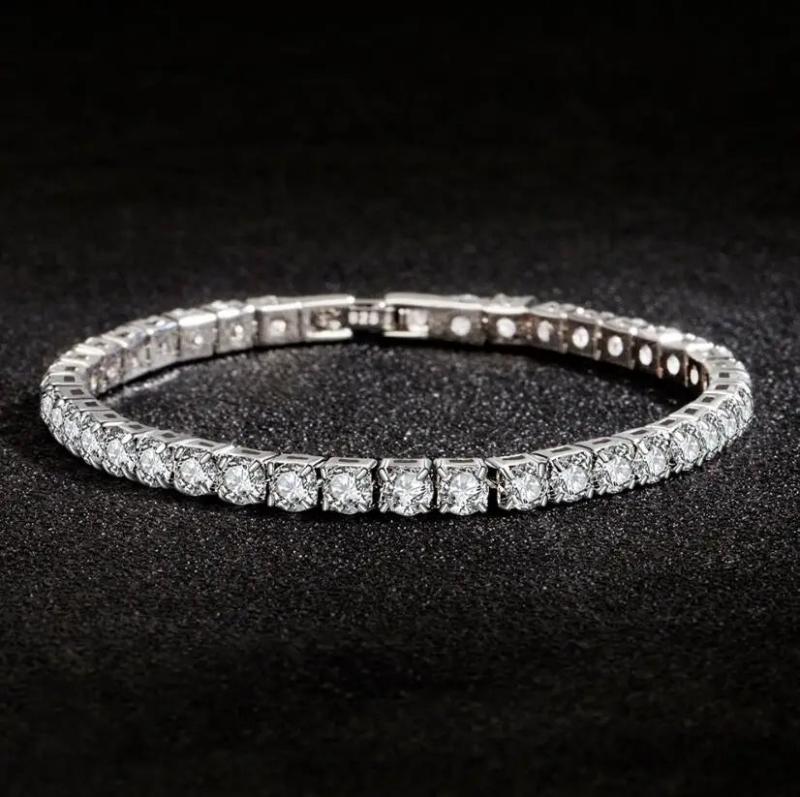 Description:Elegant and stunning real Moissanite bracelet made of S925 sterling silver. This 4mm diamond bangle chain is perfect for women who appreciate fine jewelry.Features: Made of real Moissanite in S925 sterling silver 4mm diamonds add a touch of elegance Ideal for women who love fine jewelry Classy bangle chain design...
