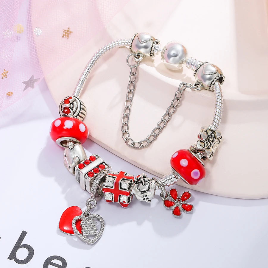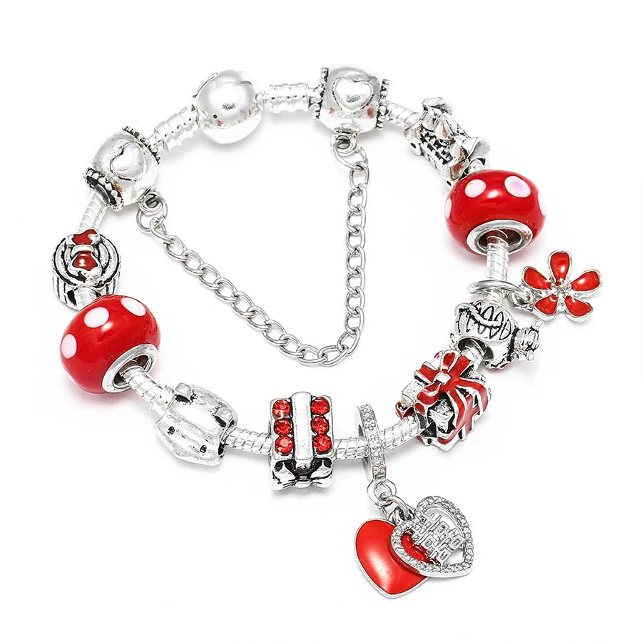Red Heart Charm Bracelet Red Crystal Gift Wrap Bangle Jewelry