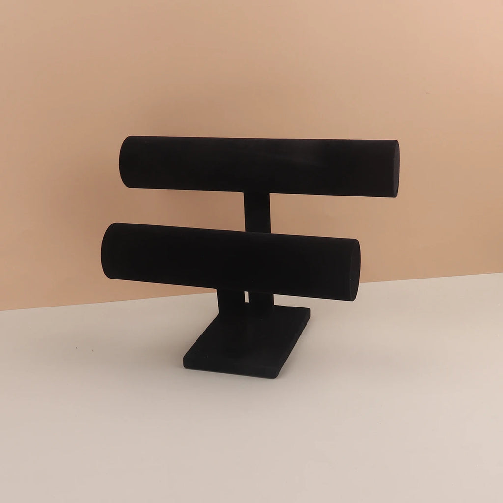 Organize and display your bracelets, chains, and watches with this stylish velvet T-bar rack. It provides a chic storage solution for your jewelry collection.