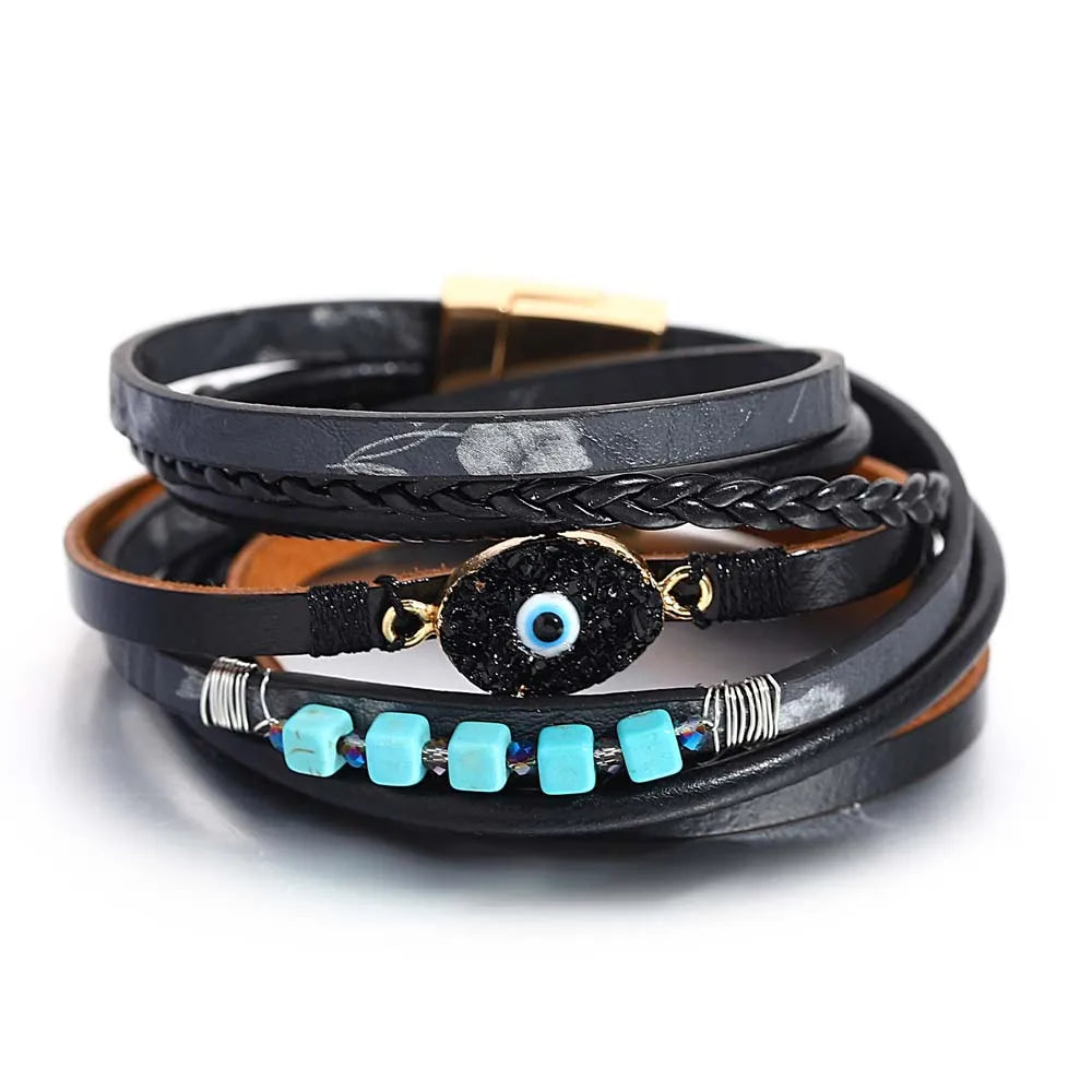 Vintage Evil Eye Leather Bracelet Multilayer Wrap