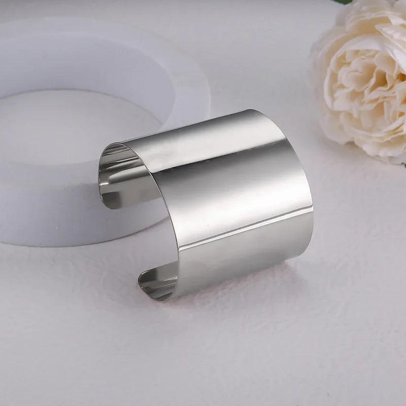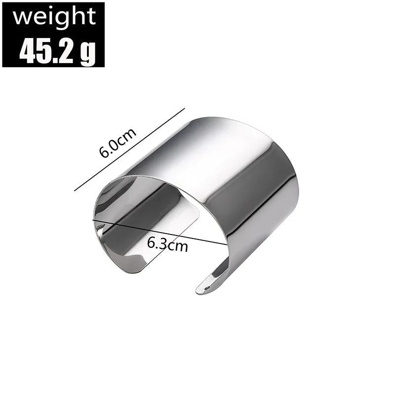 This wide cuff bangle is a perfect accessory for both men and women. Made of silver metal, it exudes a vintage hip-hop vibe that adds a touch of style to any outfit.