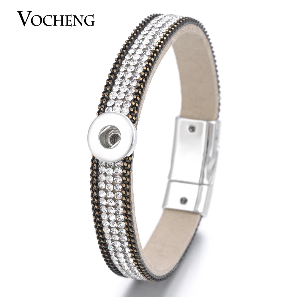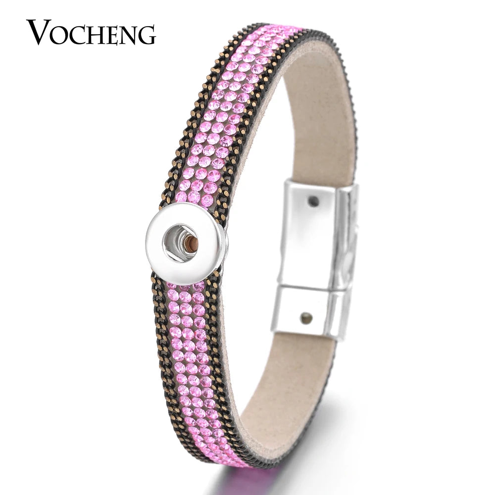 Vocheng Leather Bracelet Colorful Crystal Snap Jewelry