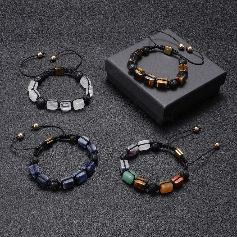 Embrace the natural beauty of this woven bracelet featuring volcanic stone, crystal cube, and agate. Advanced touch design. Multi-color options available.