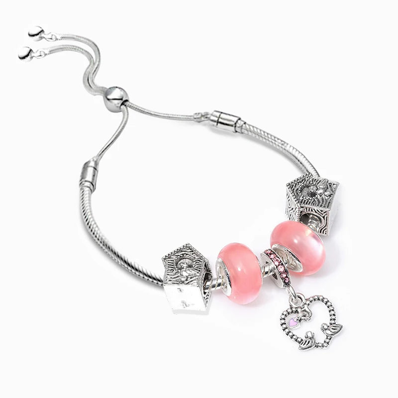Women's Heart Charm Bracelet LOVE Beads Silver Bangle Jewelry