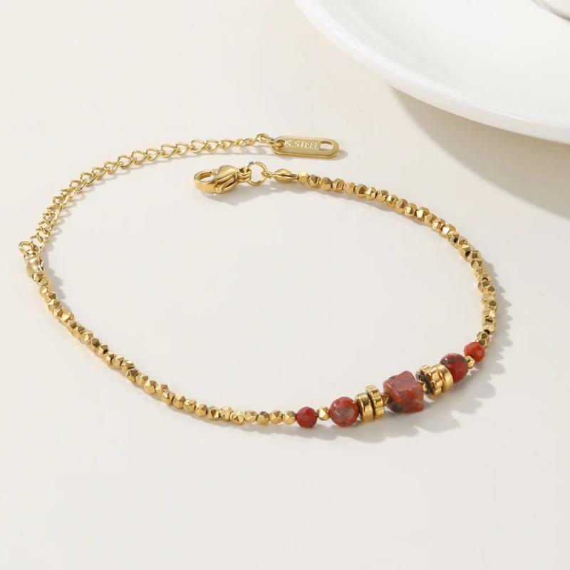 Elegant bracelet made of PVD plated stainless steel with red natural stone irregular charm. Perfect as a gift for any occasion.