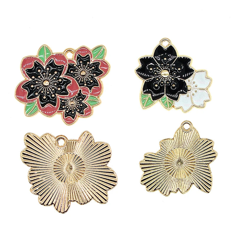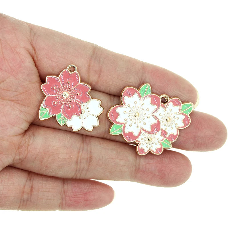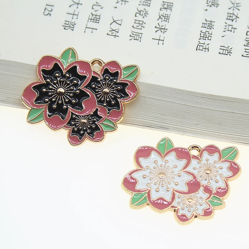 10pcs Cherry Blossoms Enamel Flower Charms Pendant Necklace Bracelet DIY Jewelry