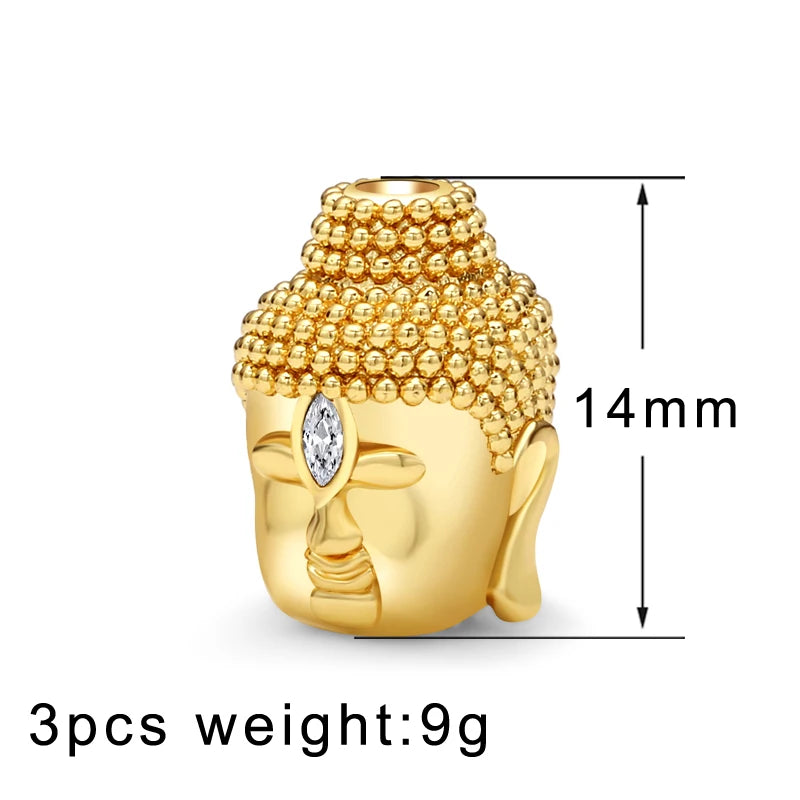 3pcs CZ Crystal Buddha Head Charms Spacer Beads Copper Pave Loose Beads