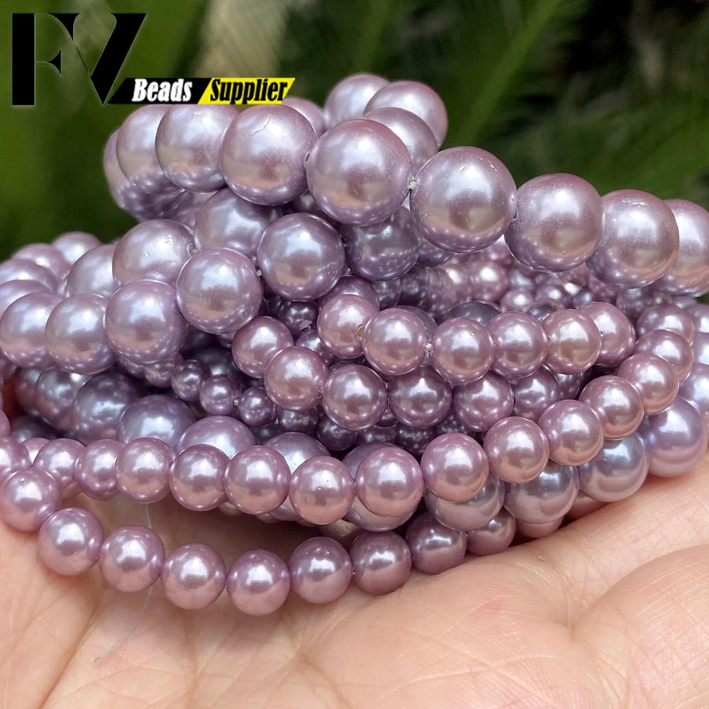 4-10mm Purple Shell Pearls Round Beads Jewelry Making DIY