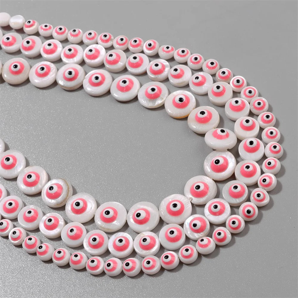 Create stunning jewelry pieces with these round shape shell beads featuring an evil eye design. Perfect for bracelets, necklaces, and other accessories.