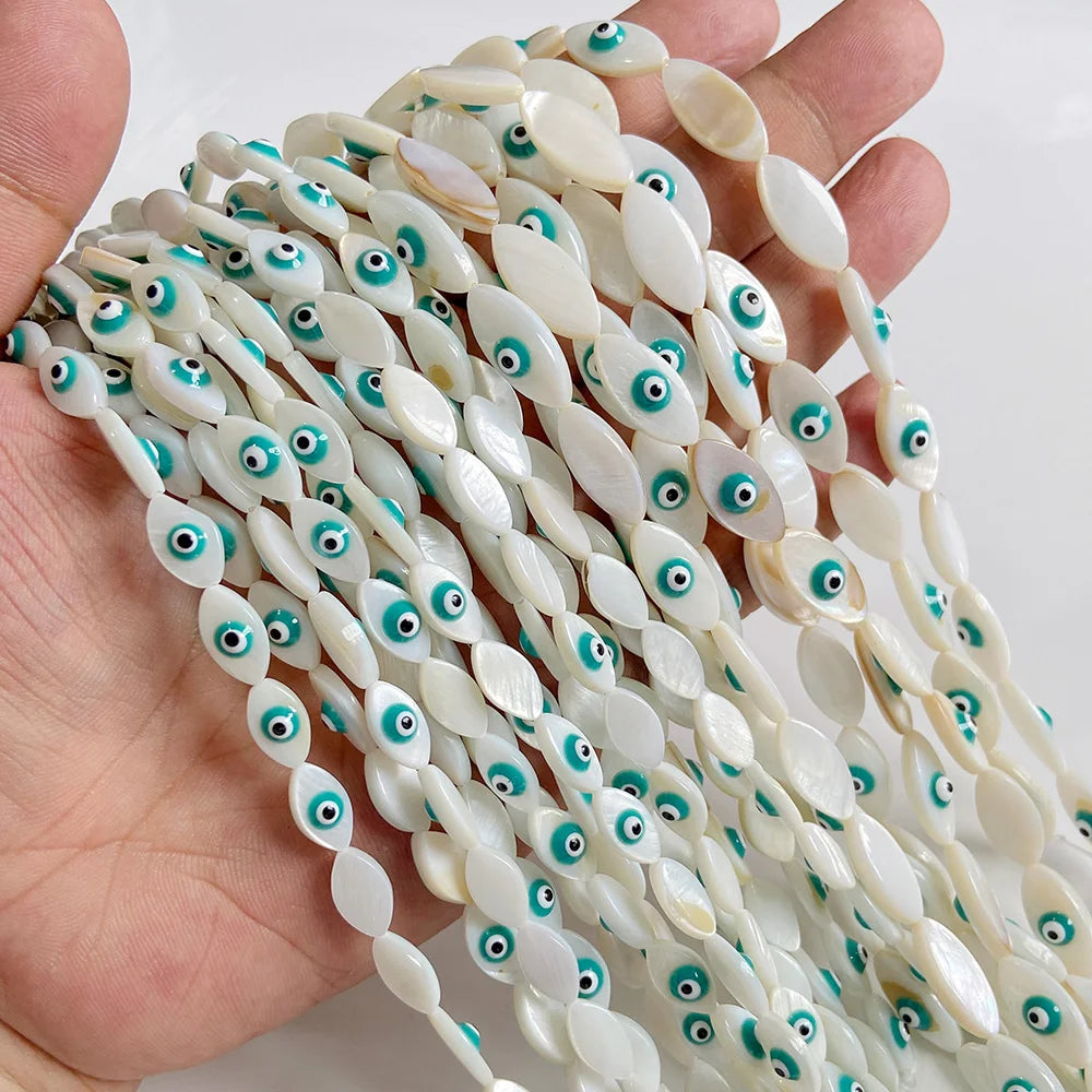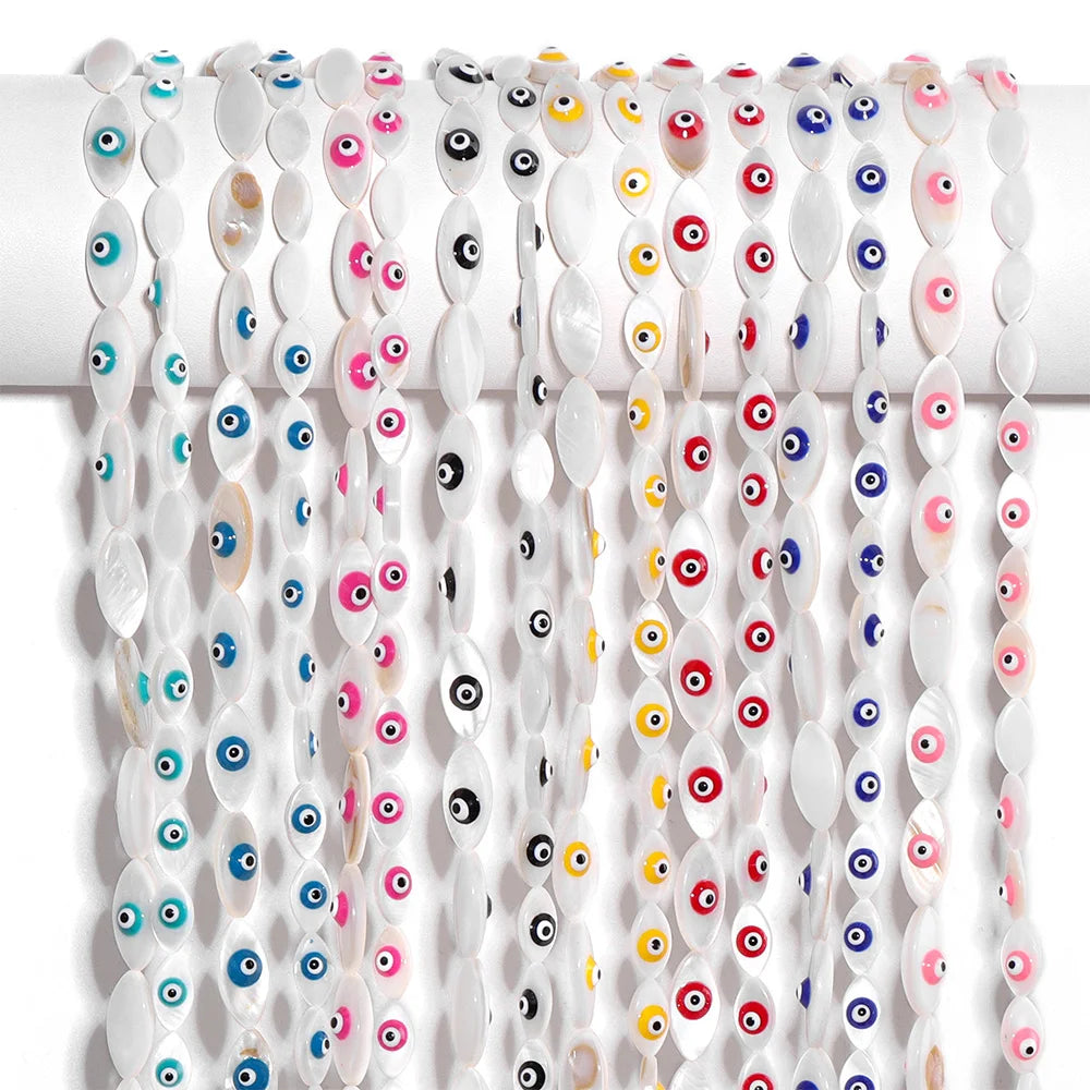 Description:Add a touch of mystique to your jewelry with these horse eye shaped evil eye shell beads. Crafted from natural mother of pearl shell, these amulet beads are perfect for DIY necklaces, earrings, and other jewelry creations.Features: Horse eye shape evil eye shell beads Made from natural mother of pearl...