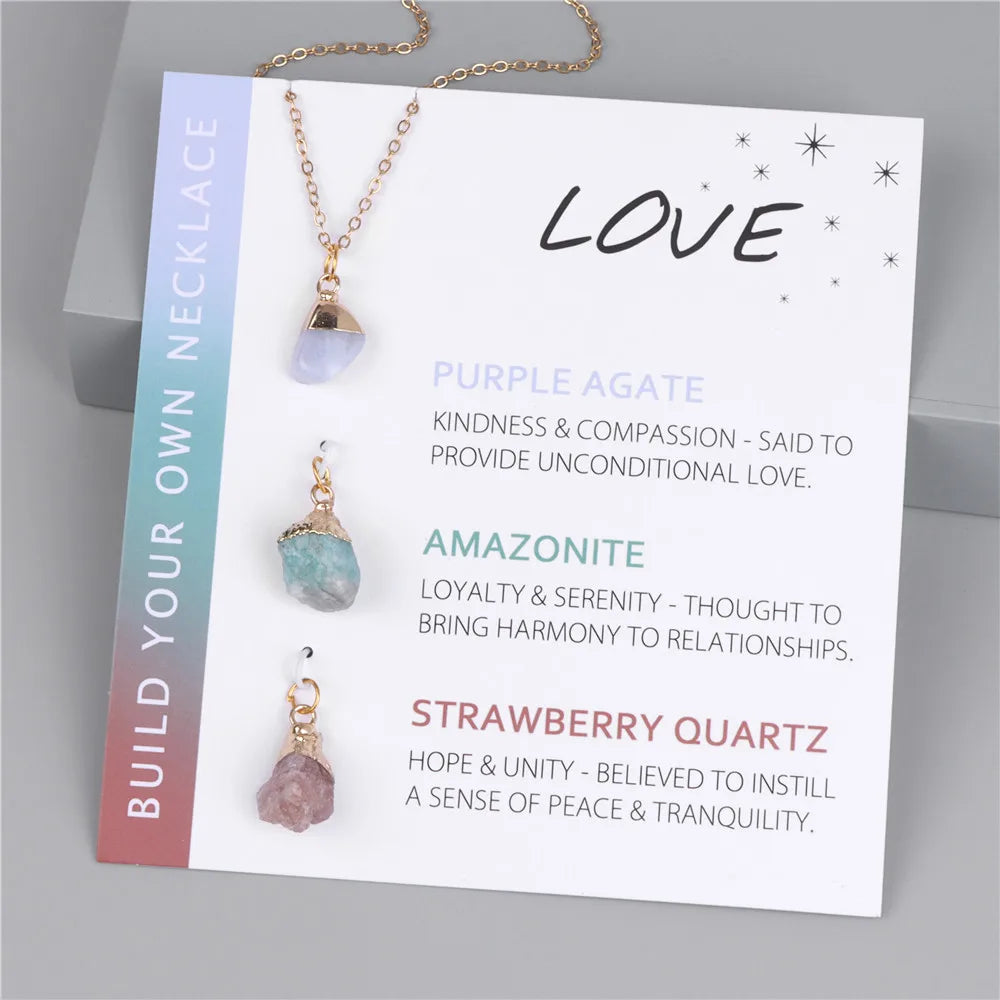 Gemstone Charms Necklace Set Interchangeable Raw Stone Pendant Necklace