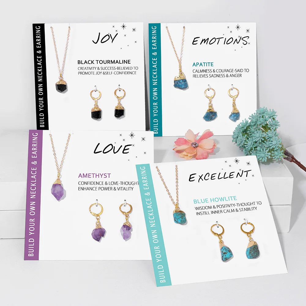 This DIY jewelry set includes multicolored healing gemstone charms that can be swapped on the raw stone pendant necklace for a personalized look.