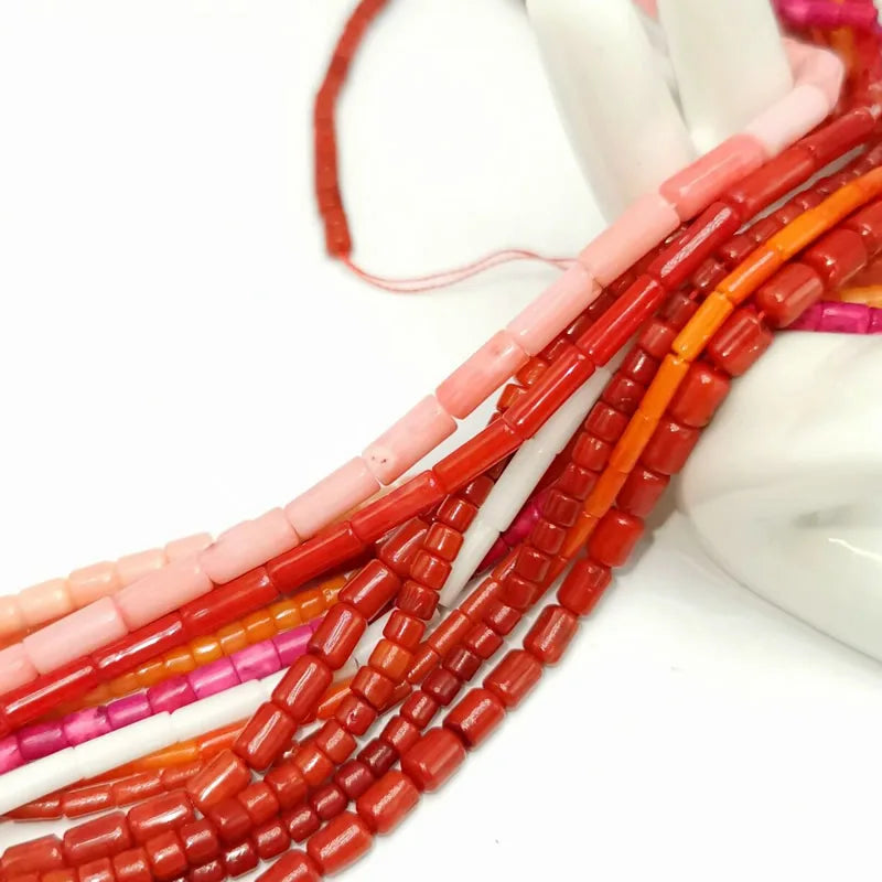 - Irregular cylindrical coral beads for jewelry making