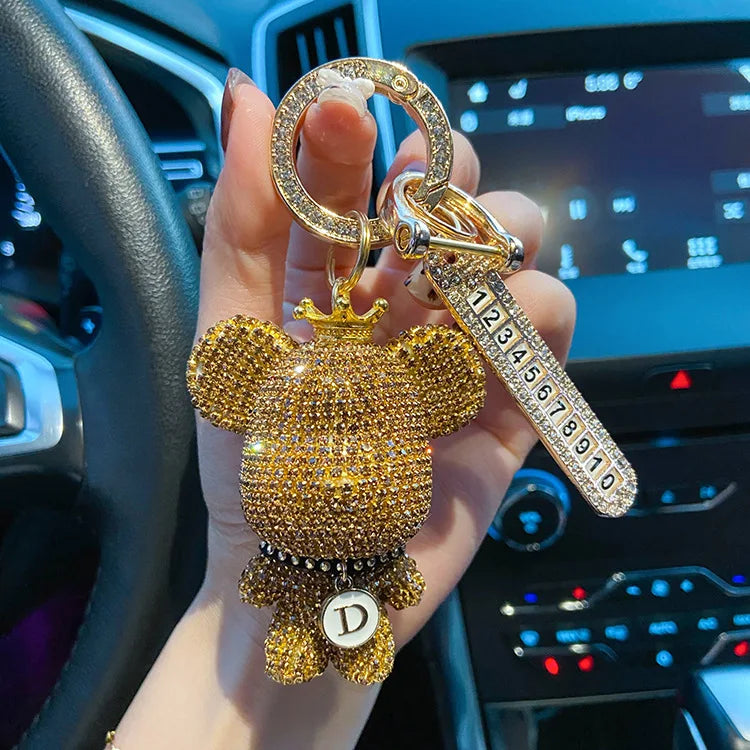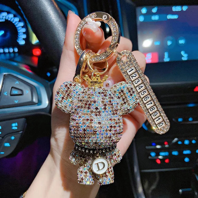 Rhinestones Bear Keychain Cartoon Anti-lost Number Plate Crown Key Chain