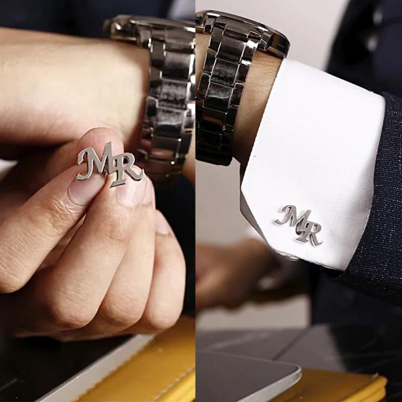 Custom Two Letters Cufflinks Stainless Steel Men Wedding Jewelry