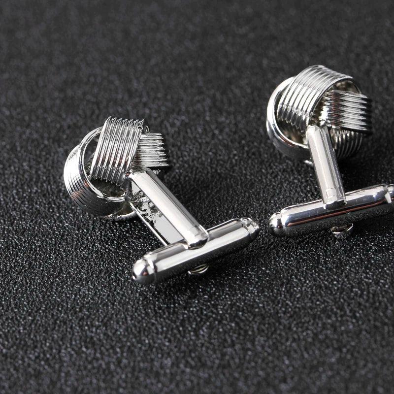 Elevate your style with these high knot cufflinks, perfect for business or wedding attire. Made of silver-plated metal, these French grooms shirt cuff links add a touch of sophistication to any outfit.