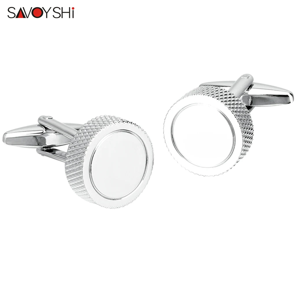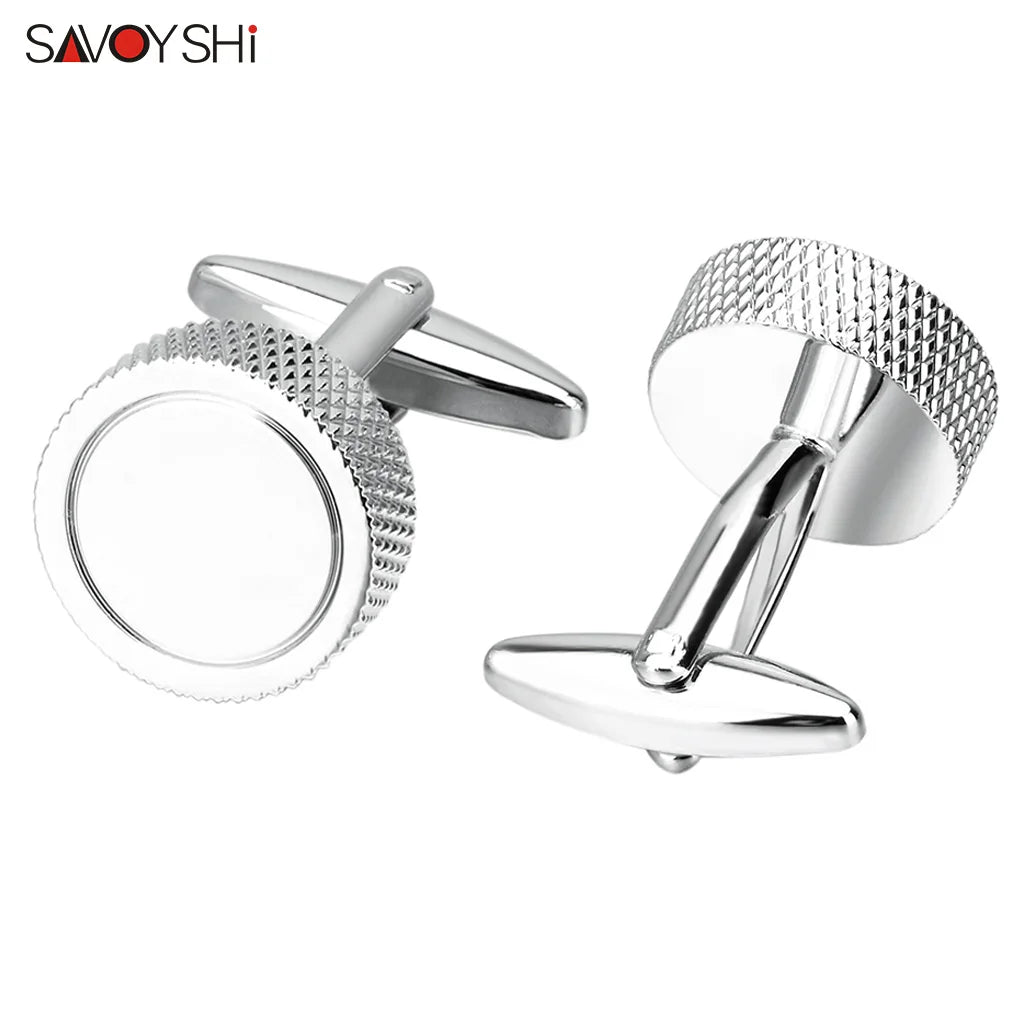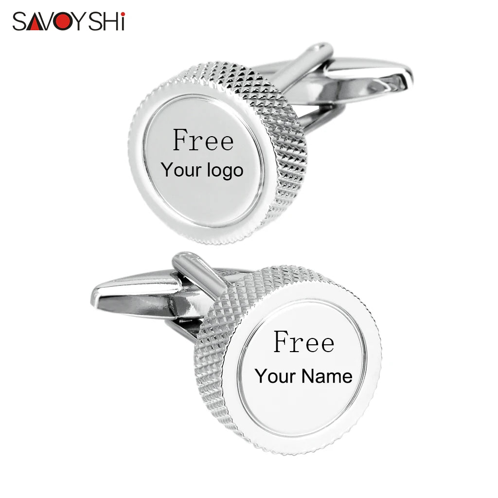 Elevate your style with these round mens cufflinks studs that feature a high-quality silver metal design. Personalize them with your name or logo for a unique touch.