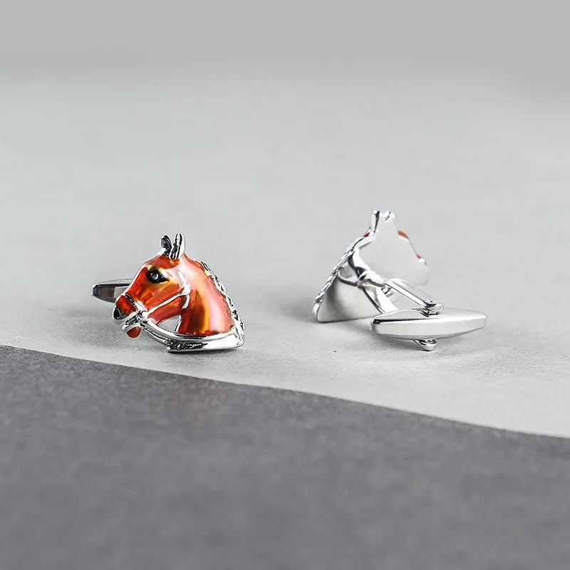 Add a touch of equestrian style to your outfit with these horse head shape metal cufflinks. Perfect for men's French shirt suits, these cufflinks are a high spot brown that adds a classic touch to any look.