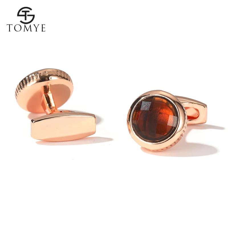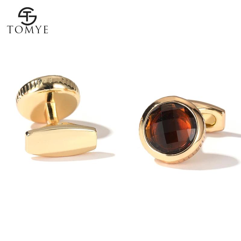 Add a touch of elegance to your formal attire with these round high-quality brown crystal cufflinks. Perfect for weddings and formal events.