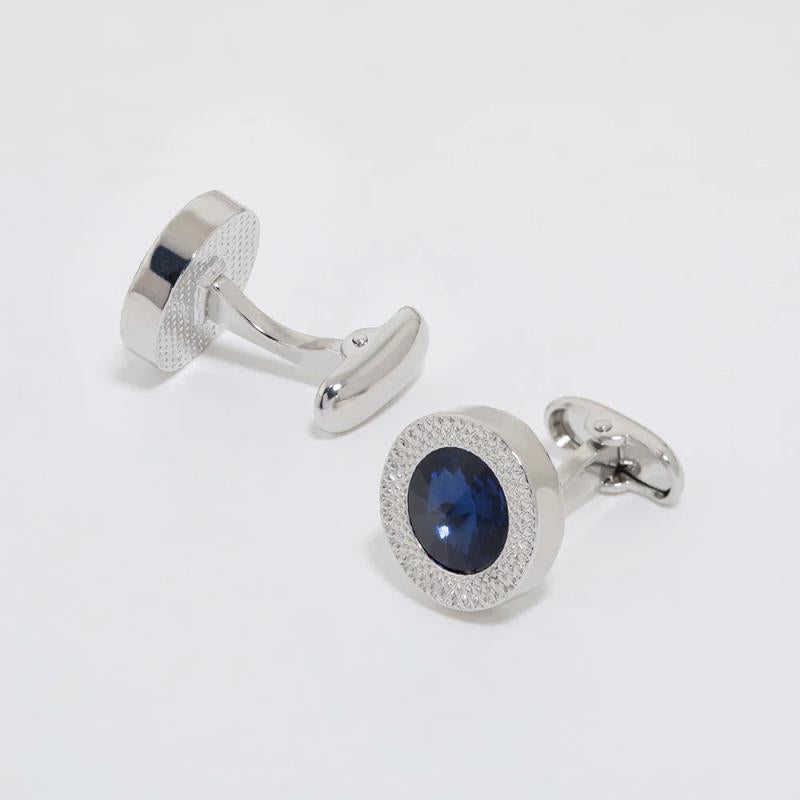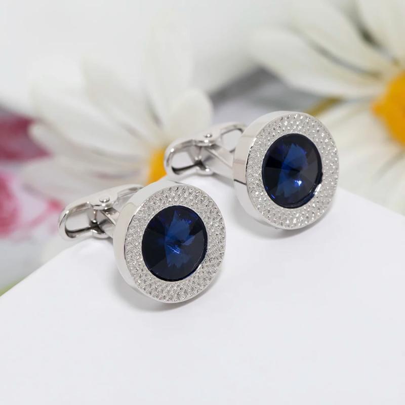 Navy Green Brown Crystal Cufflinks Circular Nail Button