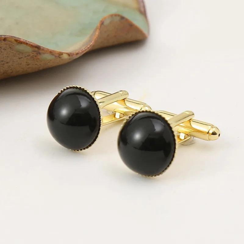 Personalized Round Pearl Cufflinks, Gold-Plated, French Style