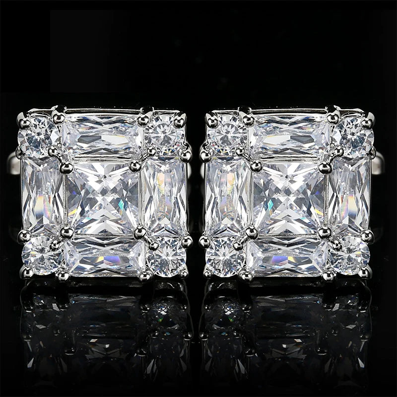 Elevate your style with these high-end cufflinks featuring square rhinestone crystals and zircons. Perfect for adding a touch of elegance to your shirt.