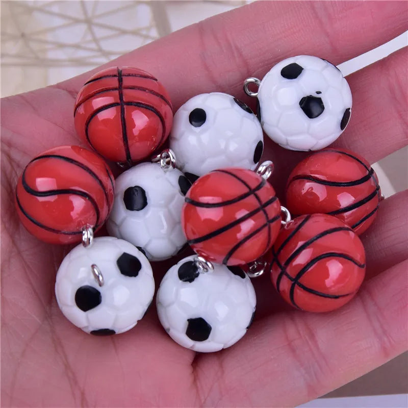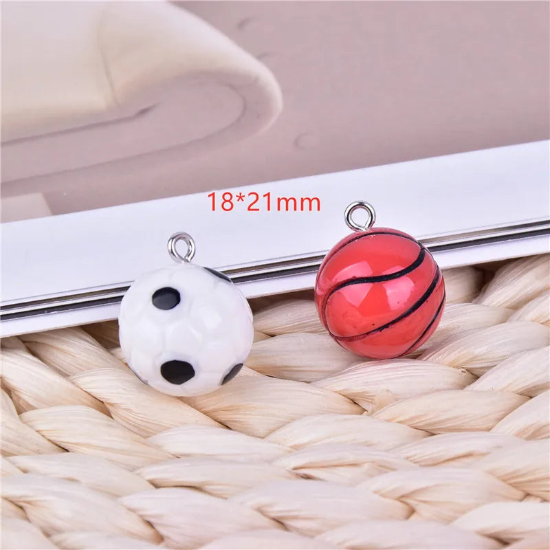 10pcs 3D Basketball Football Sport Resin Charms for DIY Jewelry Making