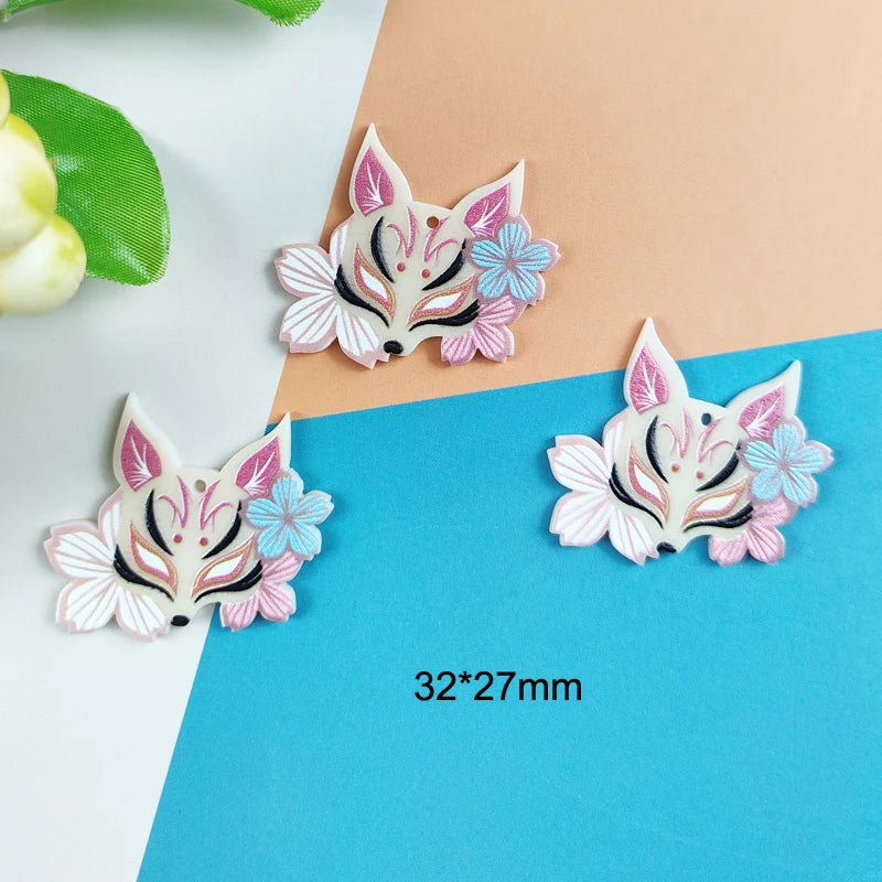 10pcs Flower Fox Acrylic Charms for Earrings DIY Animals