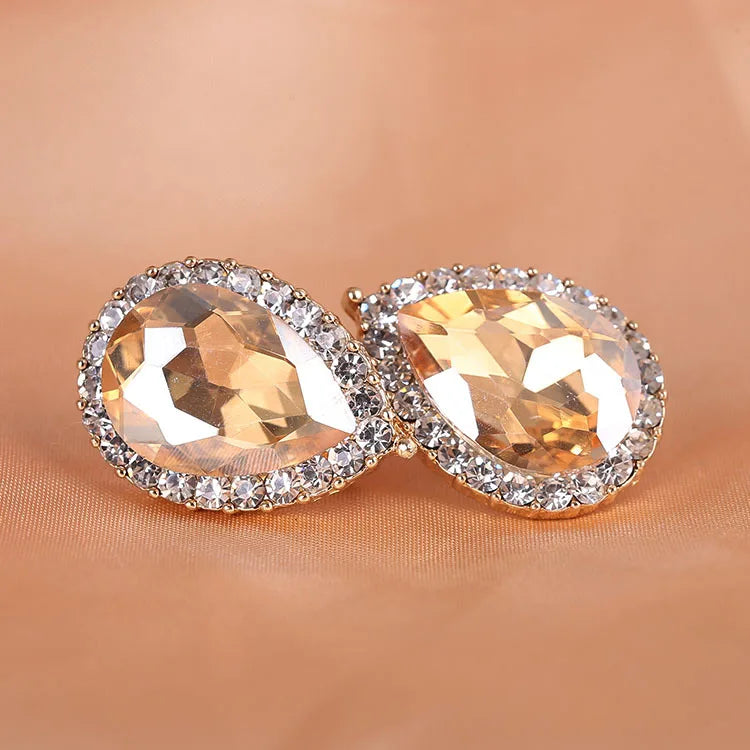 Bridal Clip On Earrings Rhinestone Water Drop Prom