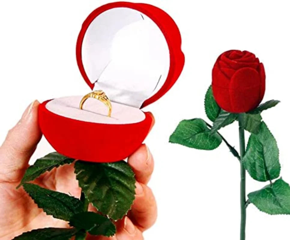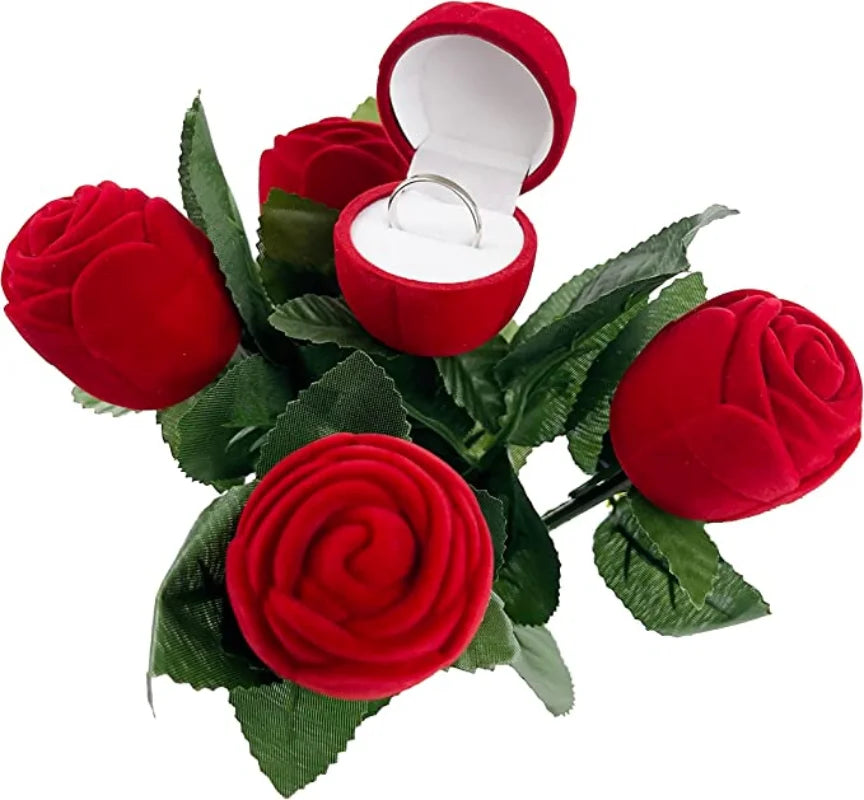 This elegant velvet red rose jewelry box is perfect for storing earrings, rings, and other jewelry items. Ideal for bridal, wedding, or special gift occasions.