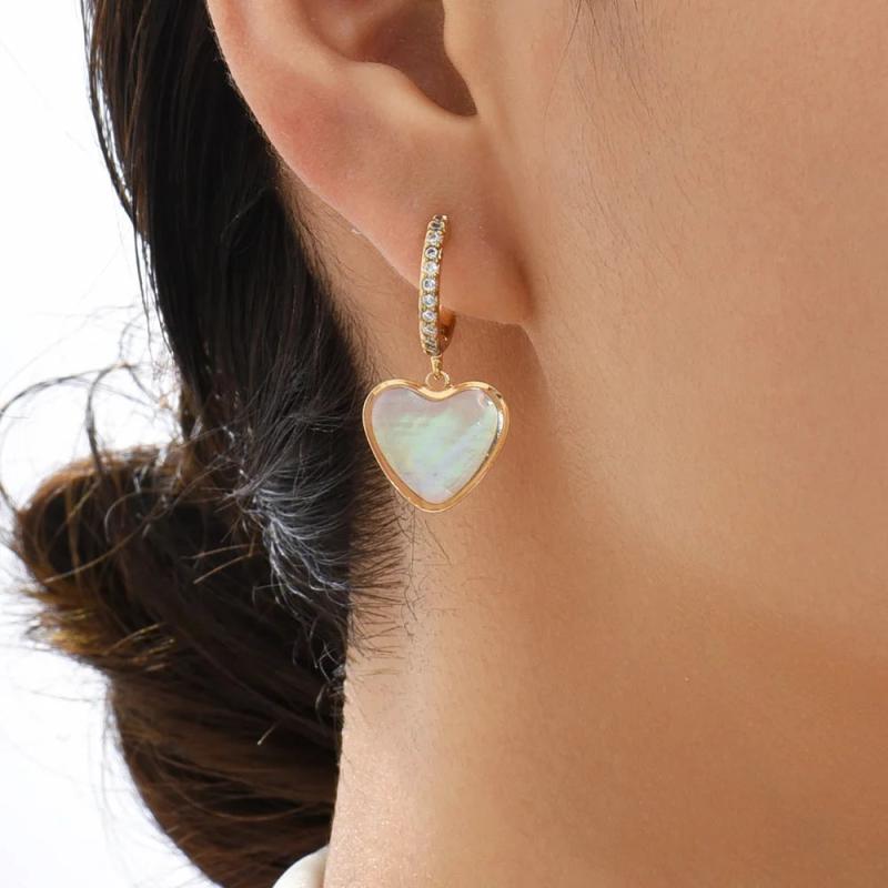 - Stainless steel circle hoops with natural stone heart beads