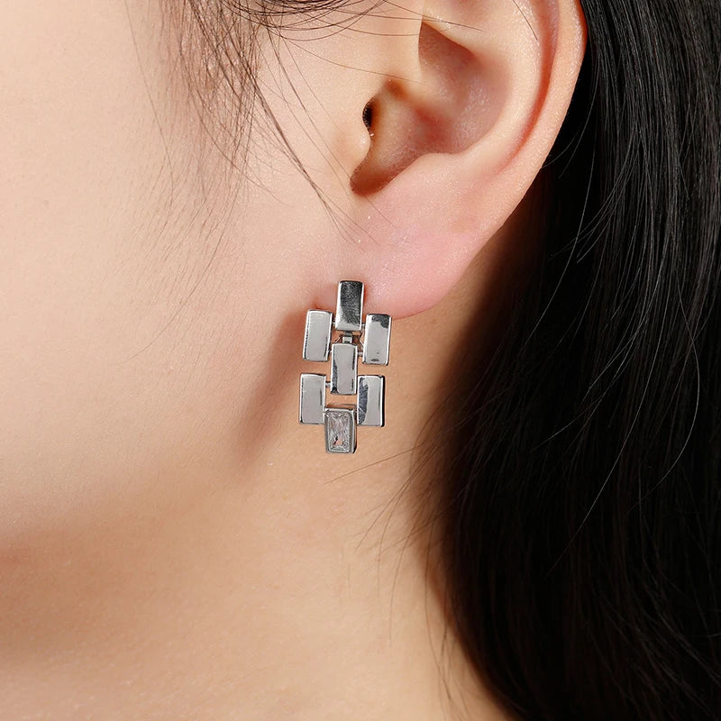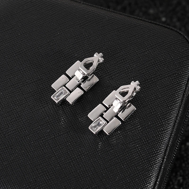 Add a touch of personality and elegance with these clip-on earrings featuring zircon metal straps. Perfect for those who want a unique and stylish accessory.