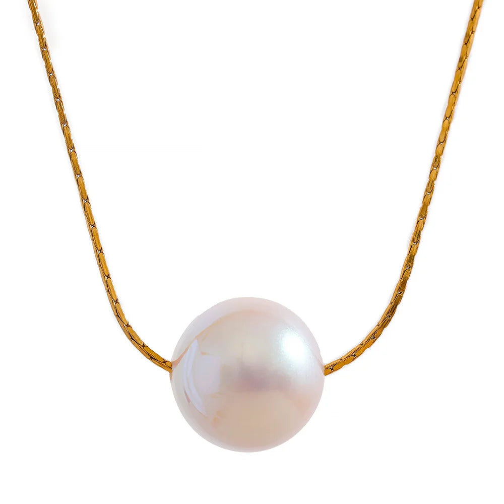15mm Big Pearl Chain Stainless Steel Necklace Women Pvd Plated