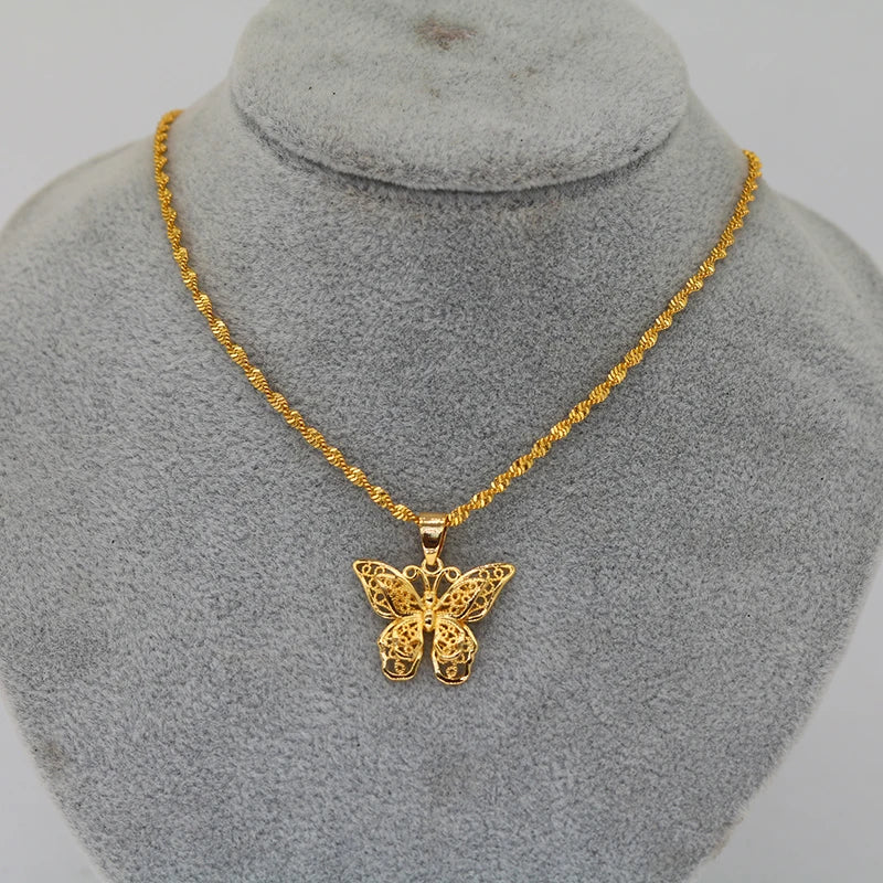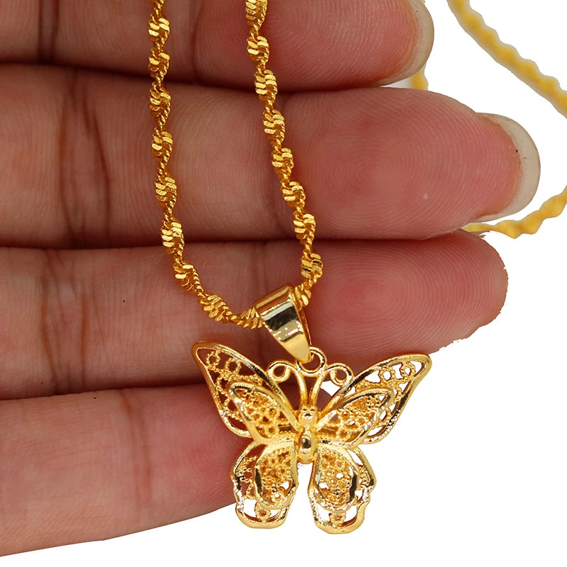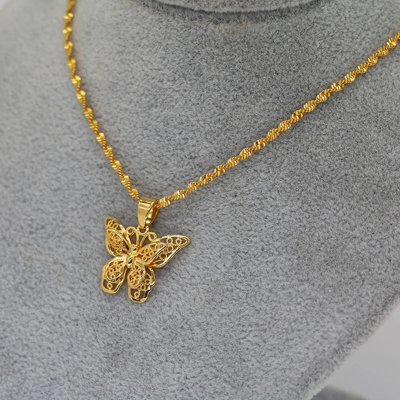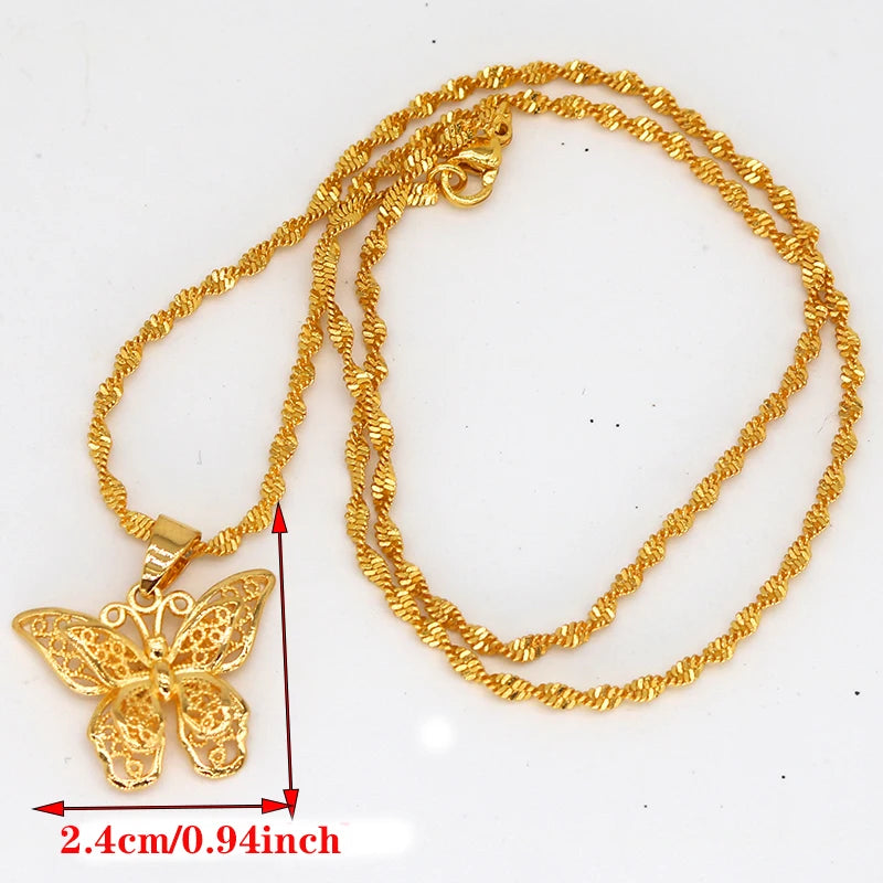 24k Butterfly Pendant Necklace for Women, Water Wave Chain Jewelry