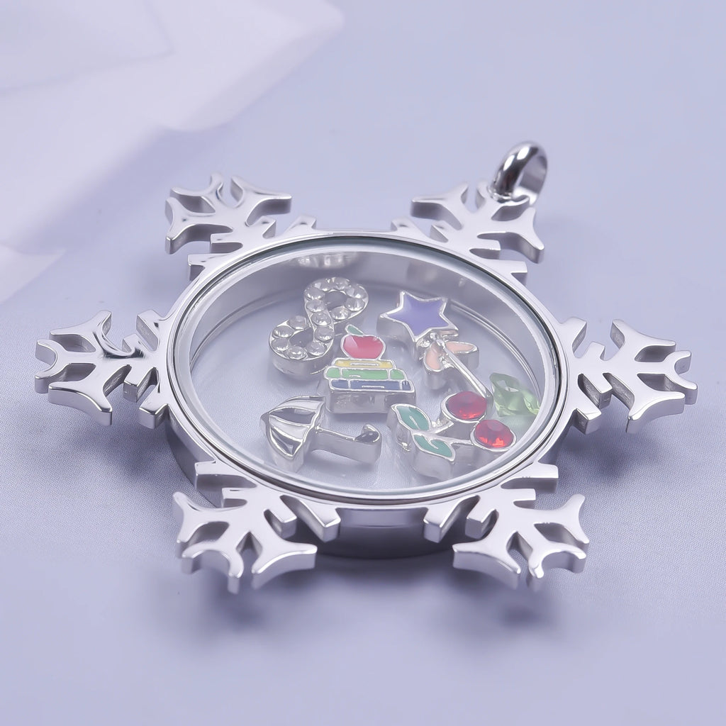 2Pcs/Lot Christmas Snowflake Glass Memory Medaillon Floating Locket Pendant