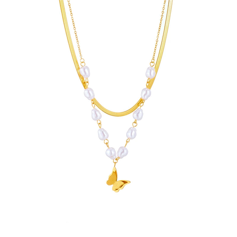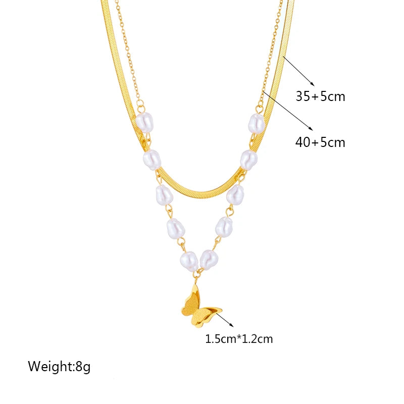 Description:Elegant 2-layer necklace featuring a beautiful pearl butterfly pendant. A chic accessory for girls and women.Features: 316L stainless steel necklace Adorned with a pearl butterfly pendant Ideal for women and girls Chic and stylish design Perfect for everyday wear or special occasions This product may be available in additional colours...
