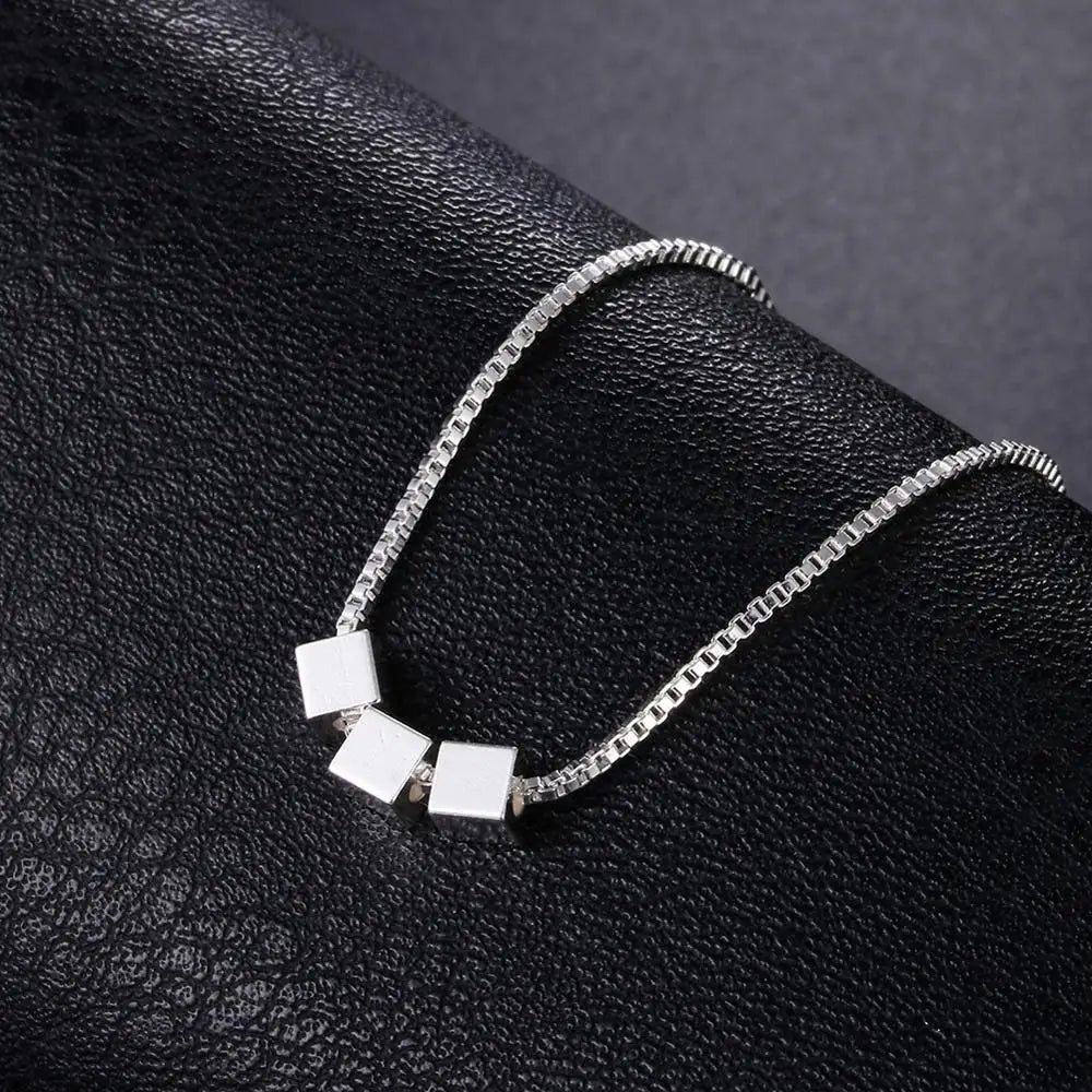 Elegant and stylish 925 sterling silver necklace featuring three squares on a box chain. Perfect for women and men for weddings, parties, or everyday wear.