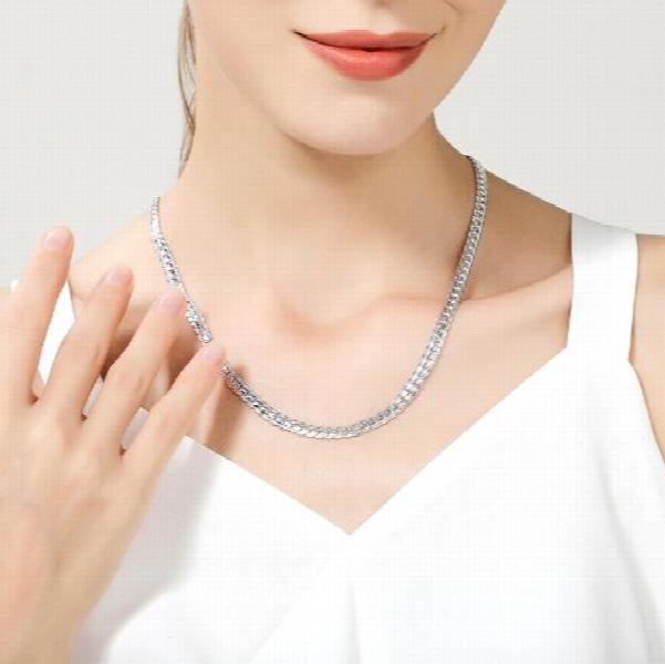 Description:This elegant sideways necklace is made of 925 stamped silver, perfect for weddings, engagements, or everyday wear.Features: 925 stamped silver necklace 6mm thick with full sideways design Available in 18, 20, 22, or 24-inch chain lengths Suitable for men and women Ideal for wedding, engagement, or daily wear jewelry This...