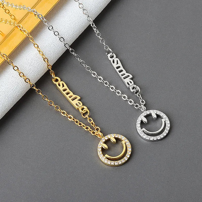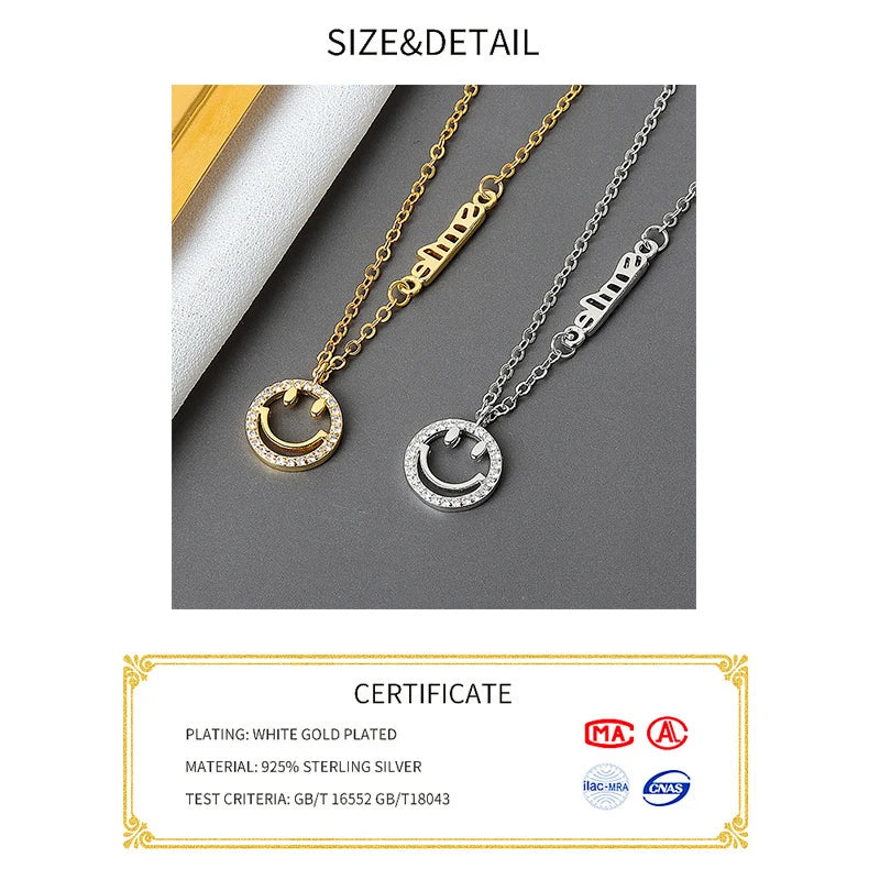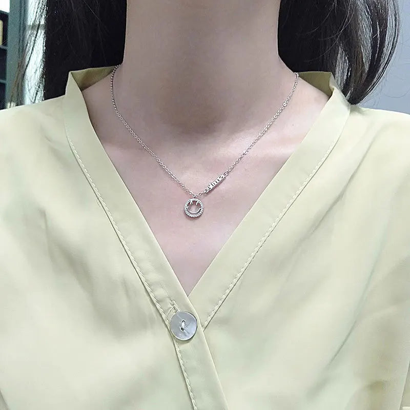 This elegant pendant necklace is made of real 925 sterling silver with a smile face design. Perfect for weddings and parties.