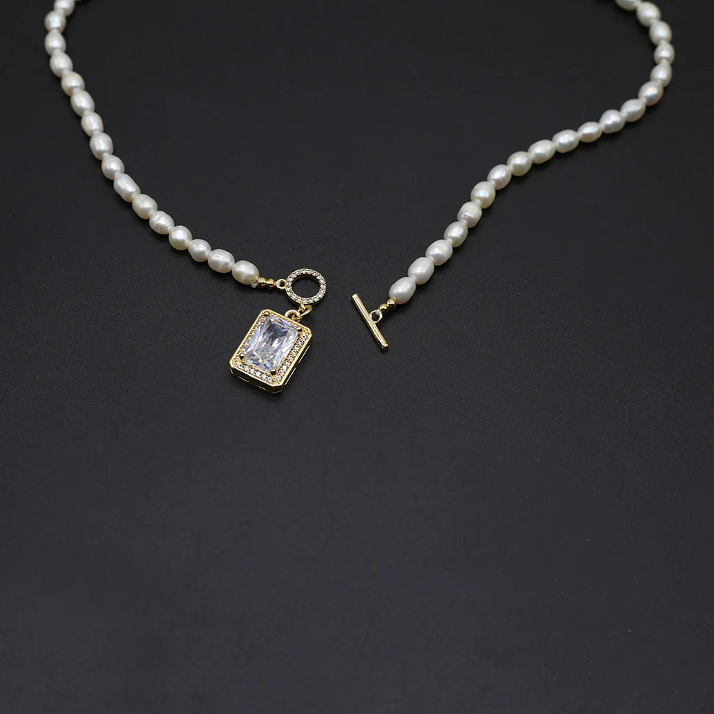 Elegant and natural baroque freshwater pearl necklace featuring a square pendant. Perfect accessory for weddings or special occasions. Makes a thoughtful gift for a loved one.