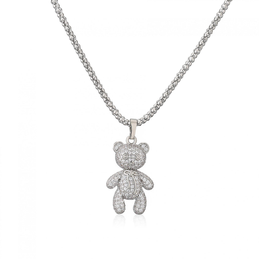 This stunning necklace features a bear women pendant in brass with heart shape pendants adorned with cubic zirconia, making it a perfect Christmas present jewelry.