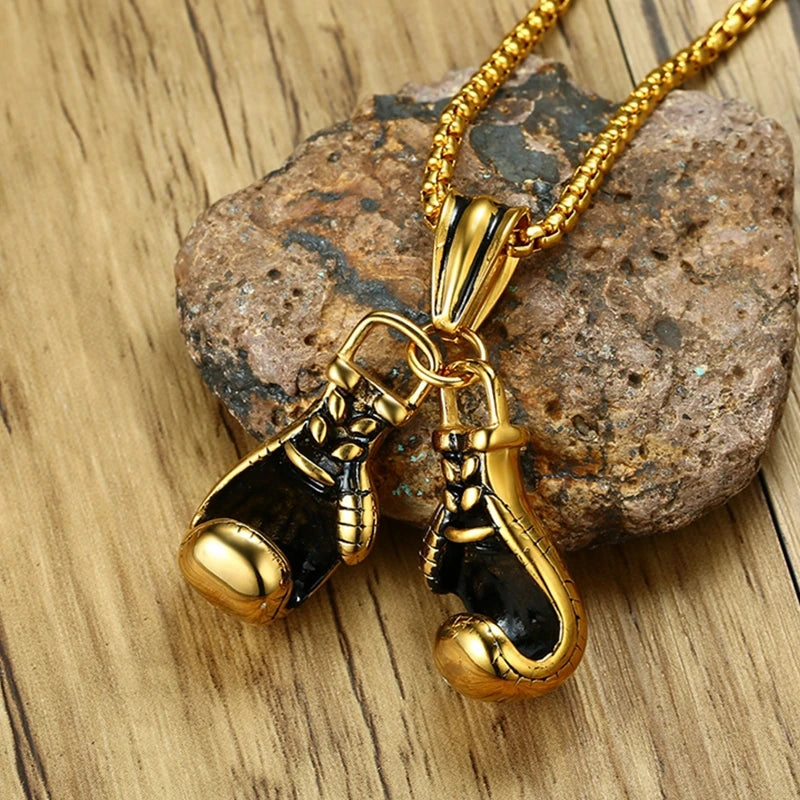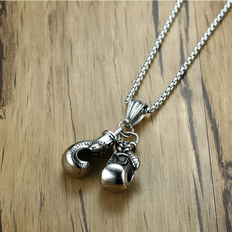 This stylish necklace features a boxing glove pendant, perfect for sports and fitness enthusiasts.
